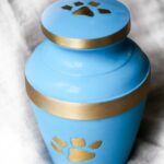 Blue wih Gold Paw Print Pet urn