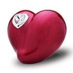 K1000 LoveHeart Keepsake Urn Pearl Red & Pol Silver w/Crystal